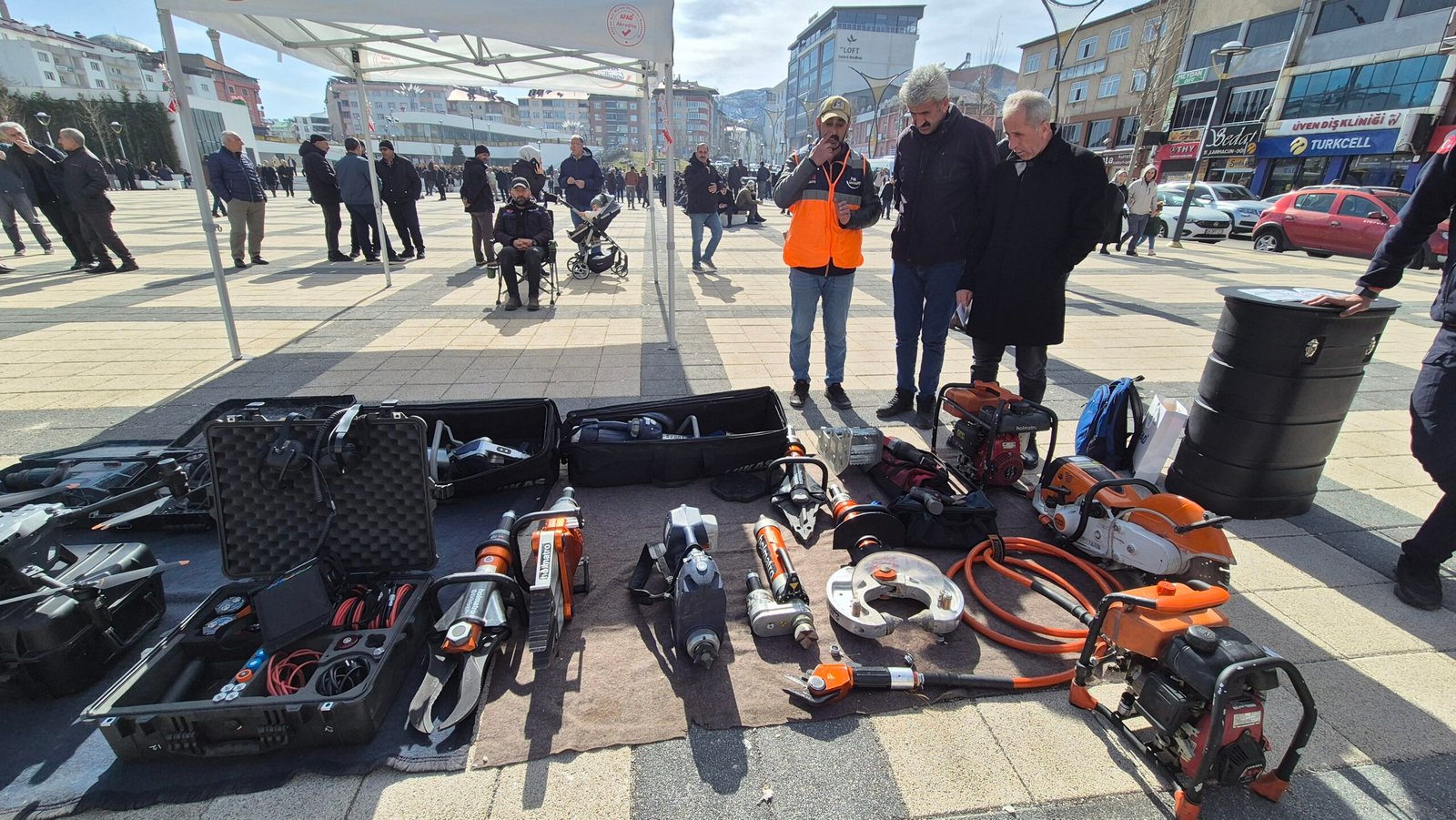 Sergide; demir kesme ve ayırma aletleri, beton kırıcılar, kolon ve ağır yük kaldırma sistemleri, hidrolik kurtarma ekipmanları ile ilk yardım çantaları vatandaşların incelemesine sunuldu. Olası bir depremde enkaz altında kalanlara müdahalede kullanılan özel kıyafetler, koruyucu maskeler, jeneratörler ve aydınlatma sistemlerinin önemi yetkililer tarafından anlatıldı.