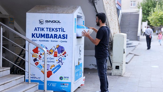 Bingöl Belediyesi, şehir genelinde yerleştirdiği giysi kumbaralarıyla hem geri dönüşümü hem de sosyal dayanışmayı teşvik ediyor.