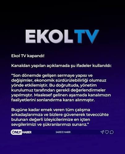 Açıklamada, Ekol TV’nin kuruluşundan bu yana izleyicilerin ilgisiyle yayın yaptığı, çalışanların özverili çalışmalarıyla kısa sürede dikkat çeken bir haber kanalı haline geldiği vurgulandı. Ancak mevcut ekonomik şartların yayıncılık faaliyetlerini sürdürülemez hale getirdiği kaydedildi. Kapanma kararının tüm yasal ve idari süreçler gözetilerek alındığı bildirildi.
