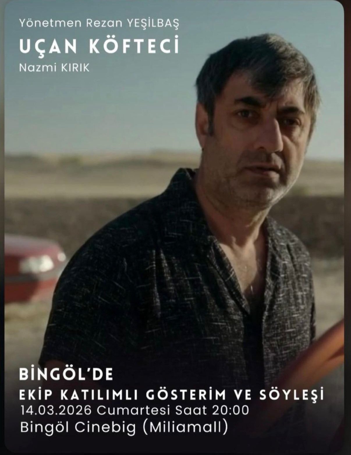 BİNGÖL/(AH12) – Tiyatro ve sinema oyuncusu Nazmi Kırık, yönetmen Rezan Yeşilbaş’ın son filmi “Uçan Köfteci”nin Bingöl’de gerçekleştirilen gösteriminde sinemaseverlerle bir araya geldi. Yoğun ilginin olduğu etkinlikte konuşan Kırık, kendi coğrafyalarına ait hikâyeleri anlatmaktan mutluluk duyduklarını söyledi.