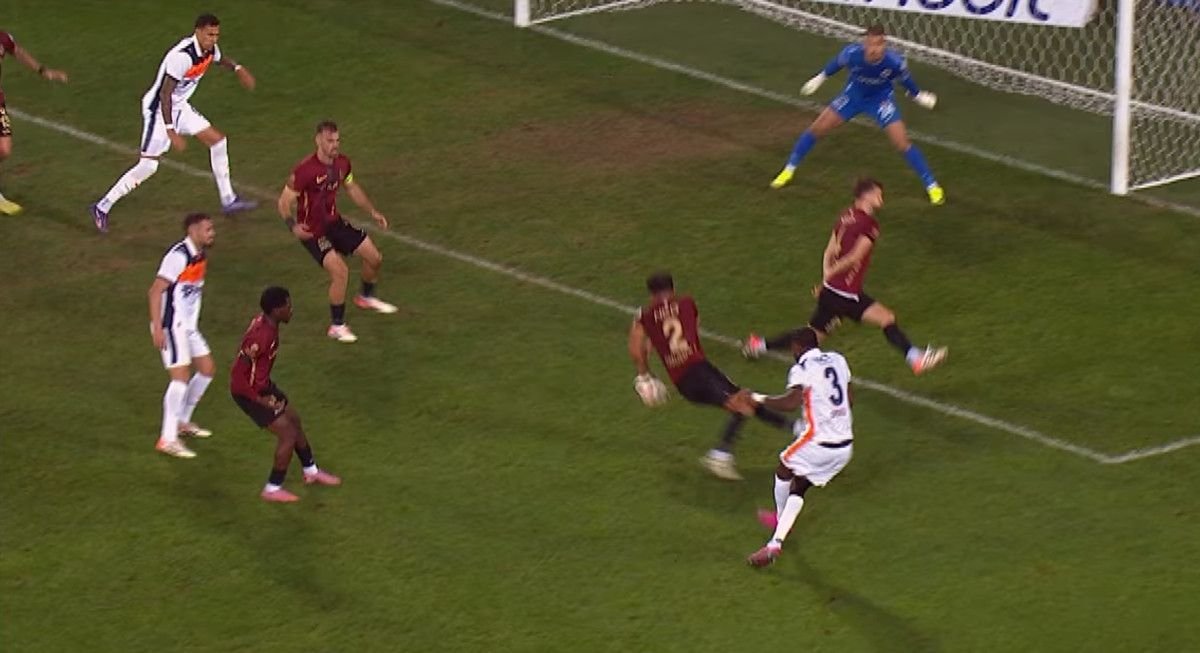 ‘Potansiyel penaltı incelemesi’ için kenara gelen Tonusluoğlu, pozisyonu farklı açılardan izledi.