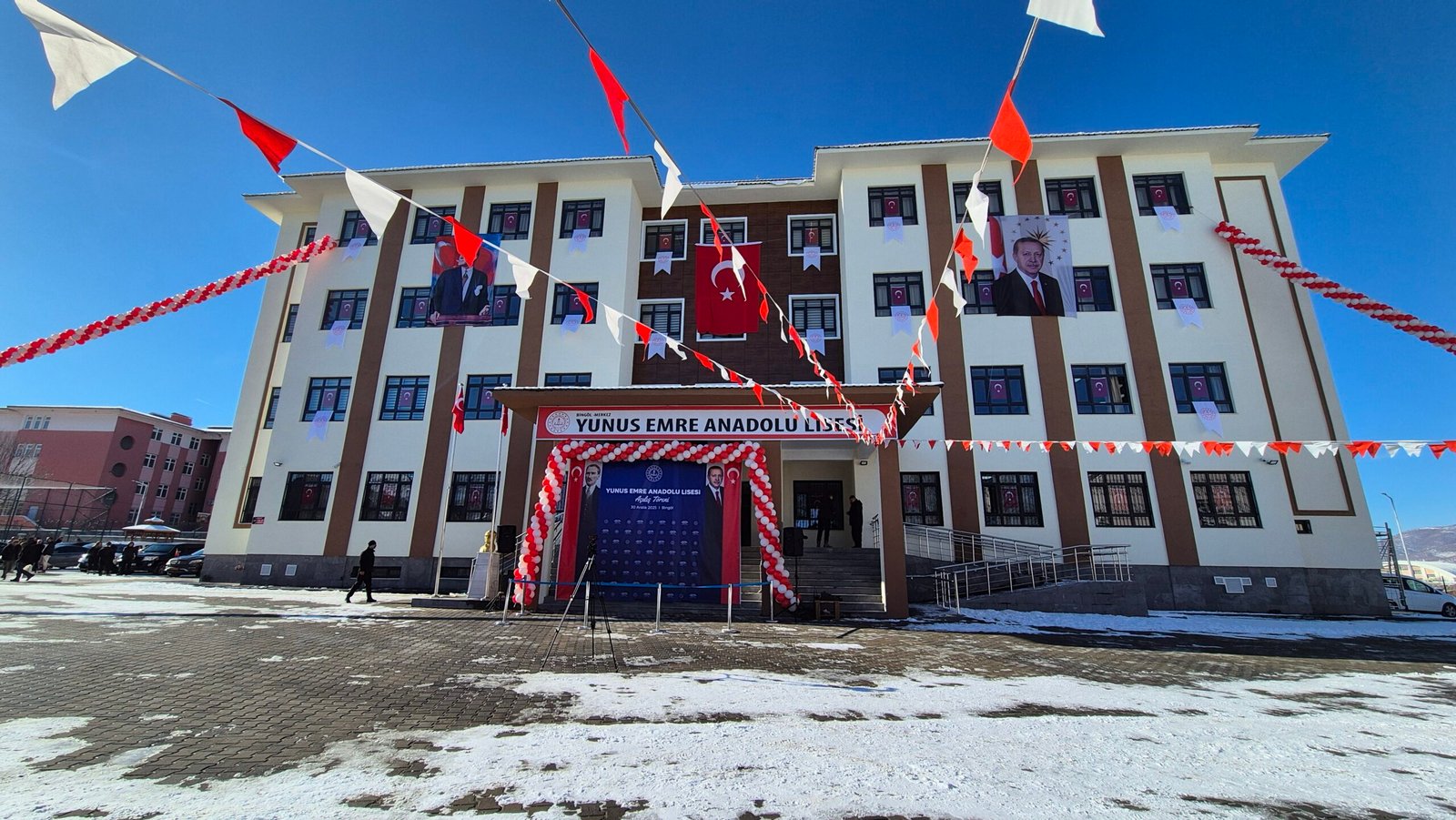 (AH12)-BİNGÖL – Deprem riski nedeniyle yıkılan Yunus Emre Anadolu Lisesi’nin yerine yapılan yeni okul binası, Cumhurbaşkanı Yardımcısı Cevdet Yılmaz ile Milli Eğitim Bakanı Yusuf Tekin’in katıldığı törenle açıldı.